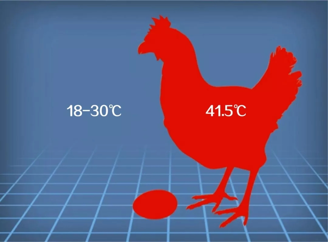 剛排出體外的雞蛋還差最后一個關鍵部位,氣室。蛋雞泄殖腔溫度41.5℃左右,環(huán)境溫度18-30℃之間,雞蛋在外部環(huán)境中遇冷收縮,形成氣室。