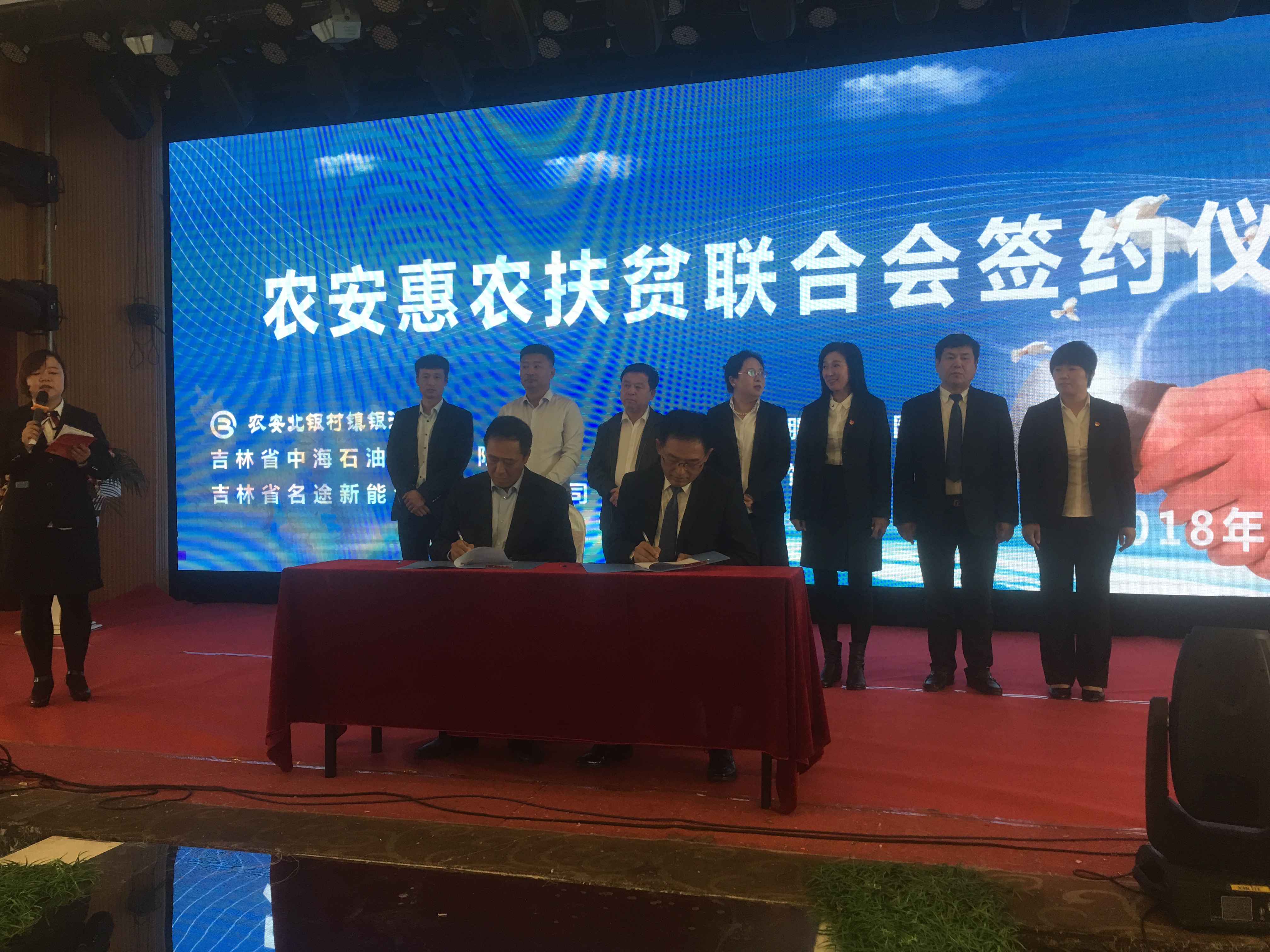 在會(huì)議上進(jìn)行了農(nóng)安惠農(nóng)扶貧聯(lián)合會(huì)簽約儀式,和農(nóng)牧業(yè)集團(tuán)董事長(zhǎng)方彥明先生與農(nóng)安北銀村鎮(zhèn)銀行行長(zhǎng)范雨新先生現(xiàn)場(chǎng)簽約合作。